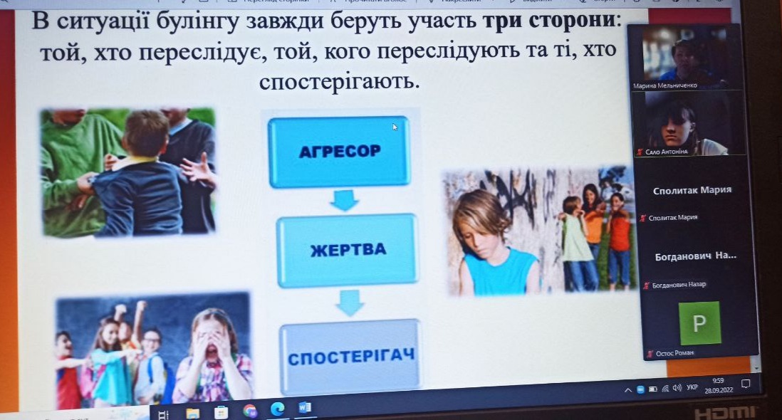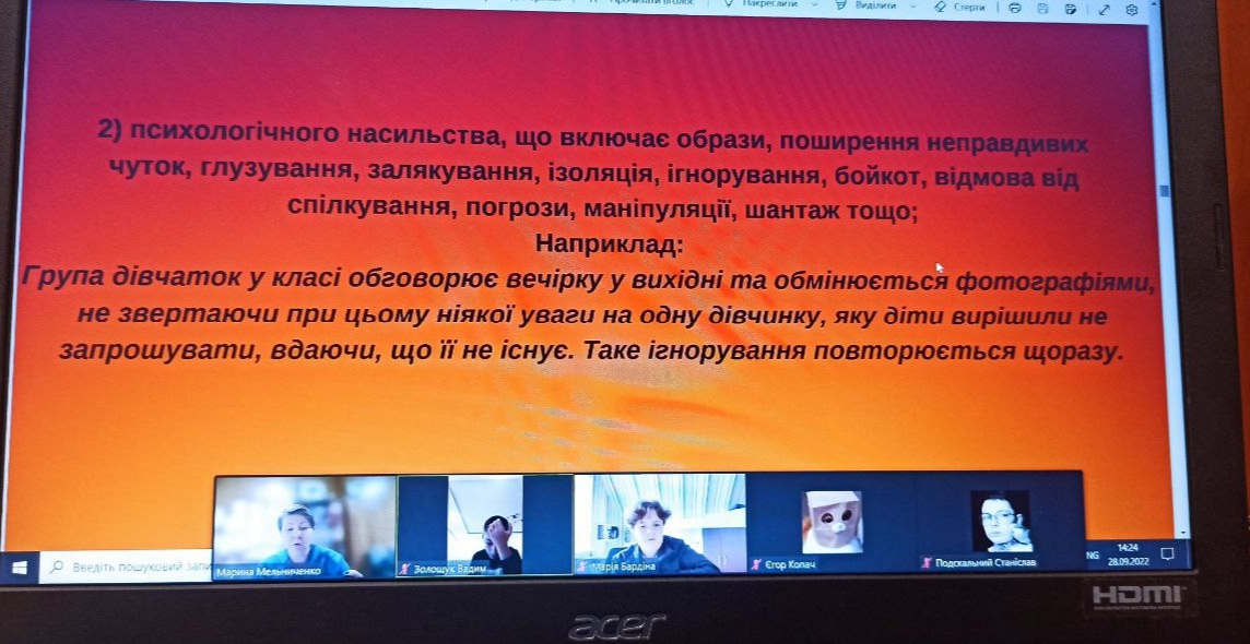 26-27 вересня 2022 року соціальним педагогом ліцею Мариною Мельниченко були проведені антибулінгові уроки в 9-х класах,