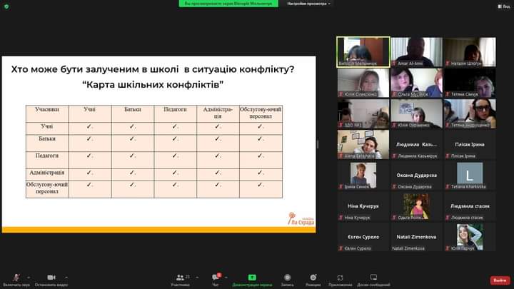 по впровадженню відновного підходу, вирішення конфліктів мирним шляхом та створення безнасильницького освітнього середовища.