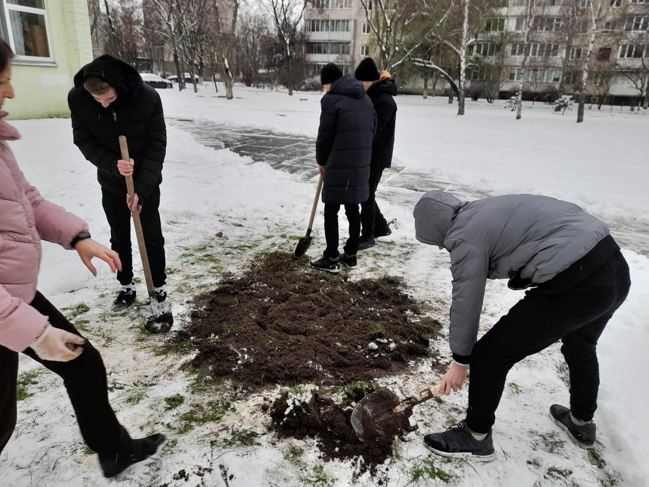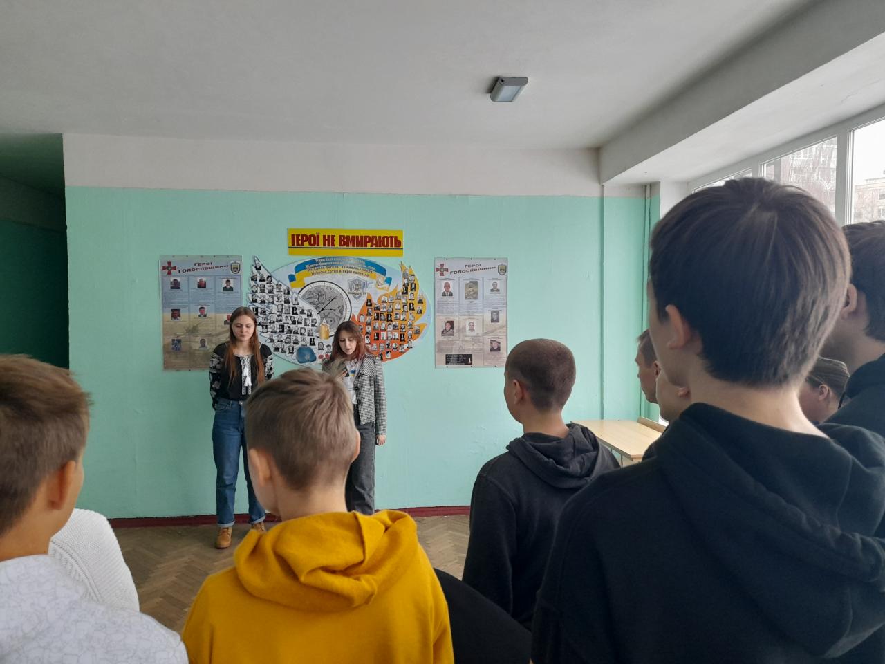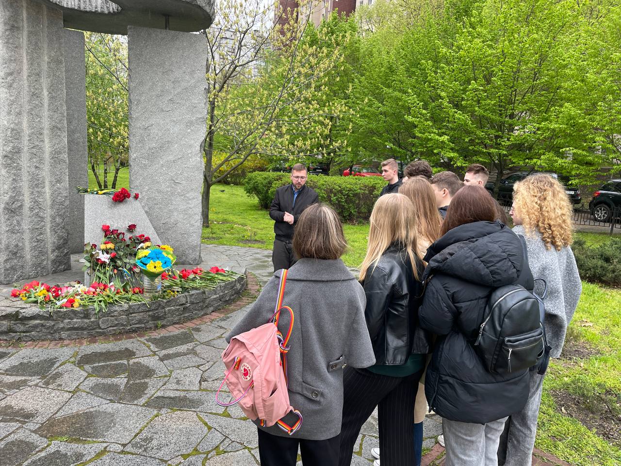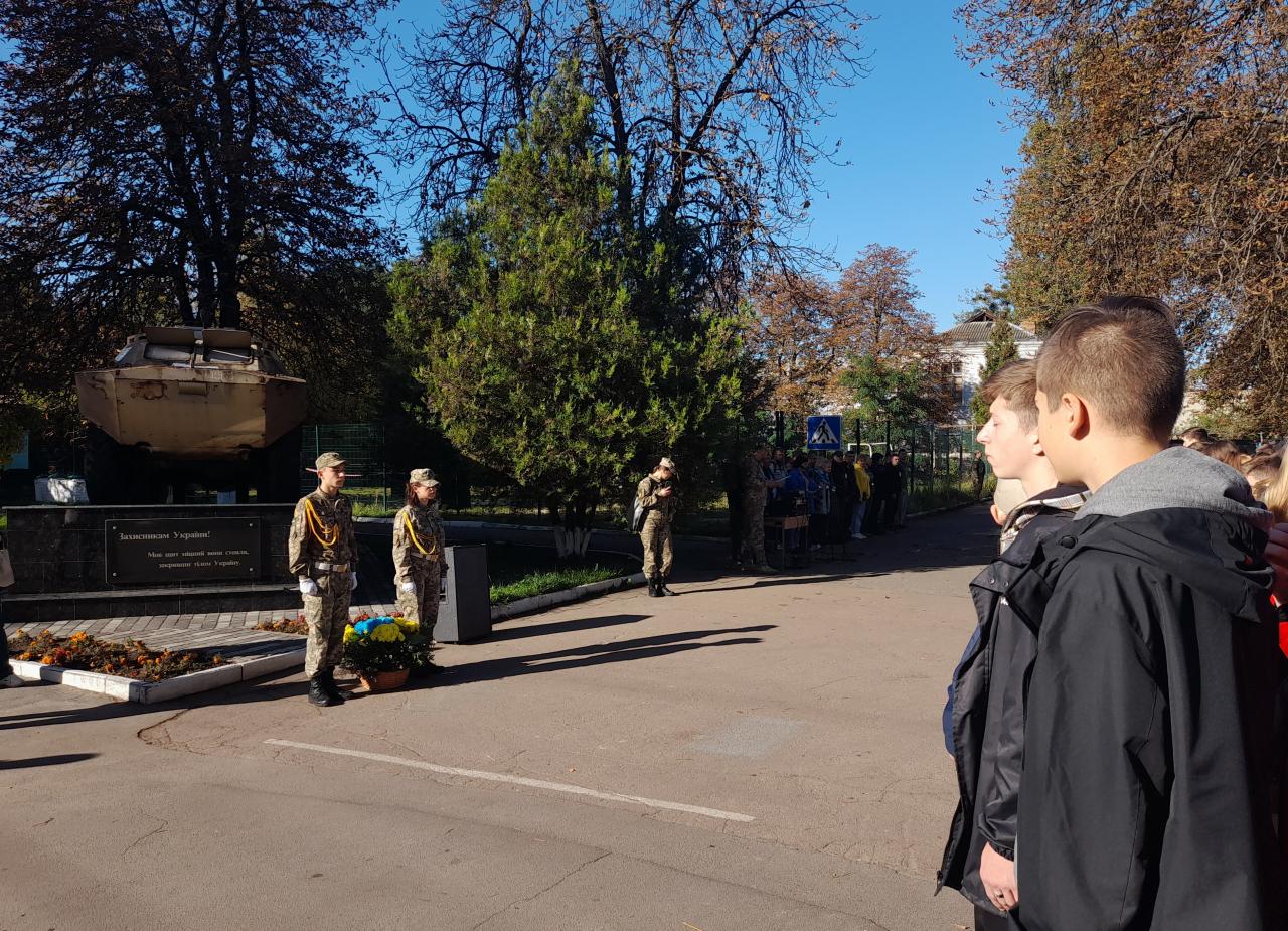 Учні 10-х класів здійснили покладання квітів до пам'ятного знаку загиблим Героям Голосіївського району під час російсько-української війни.