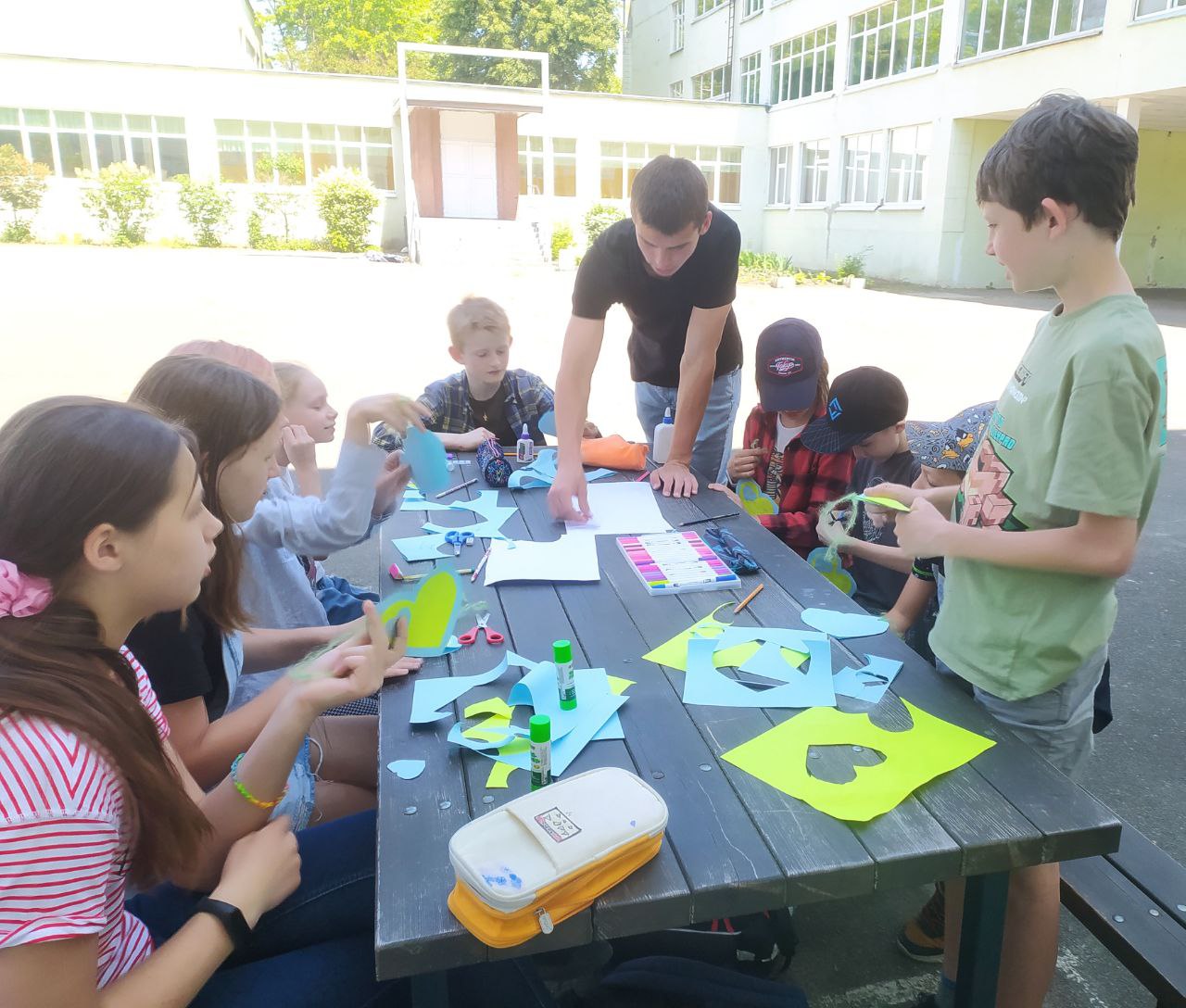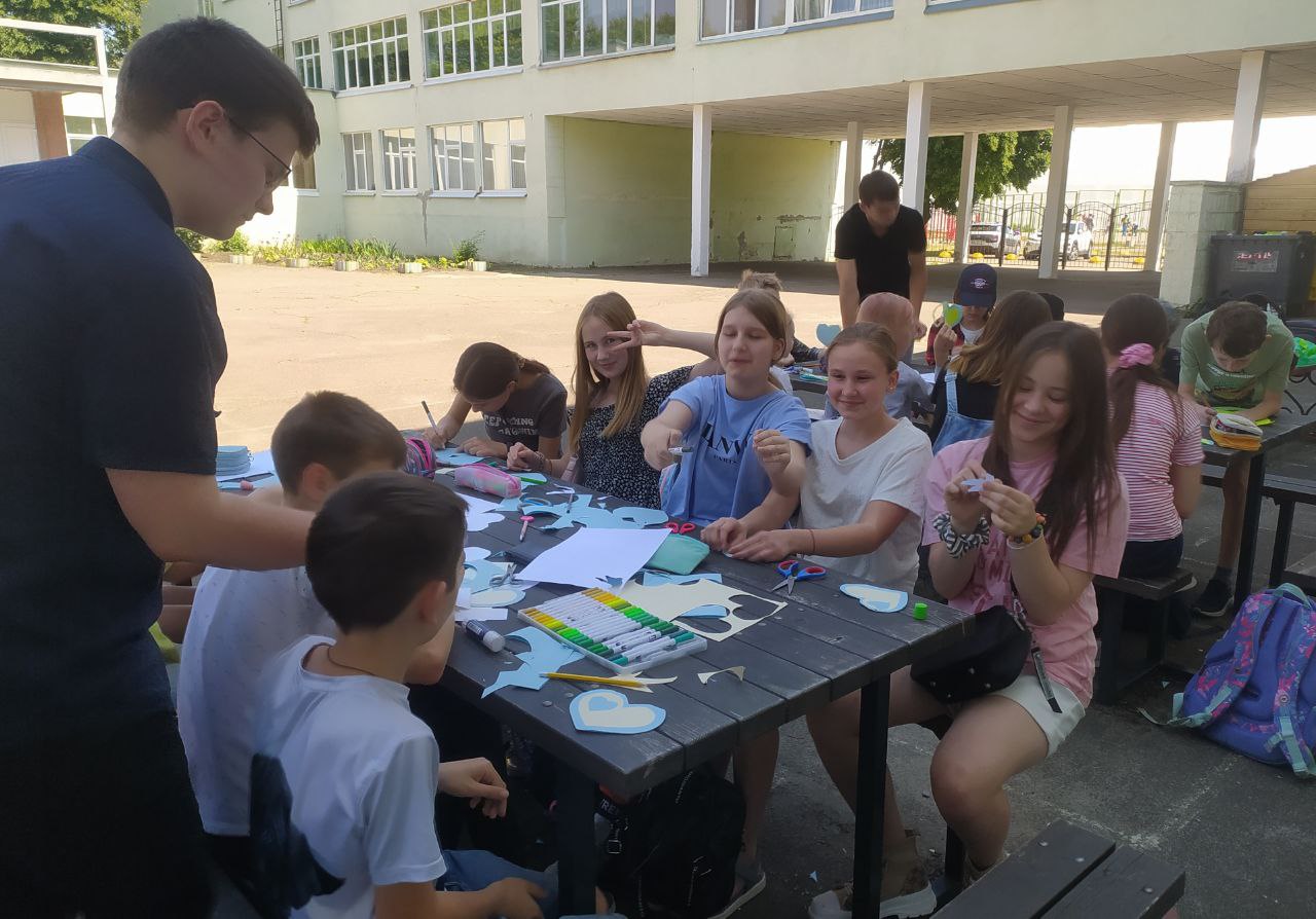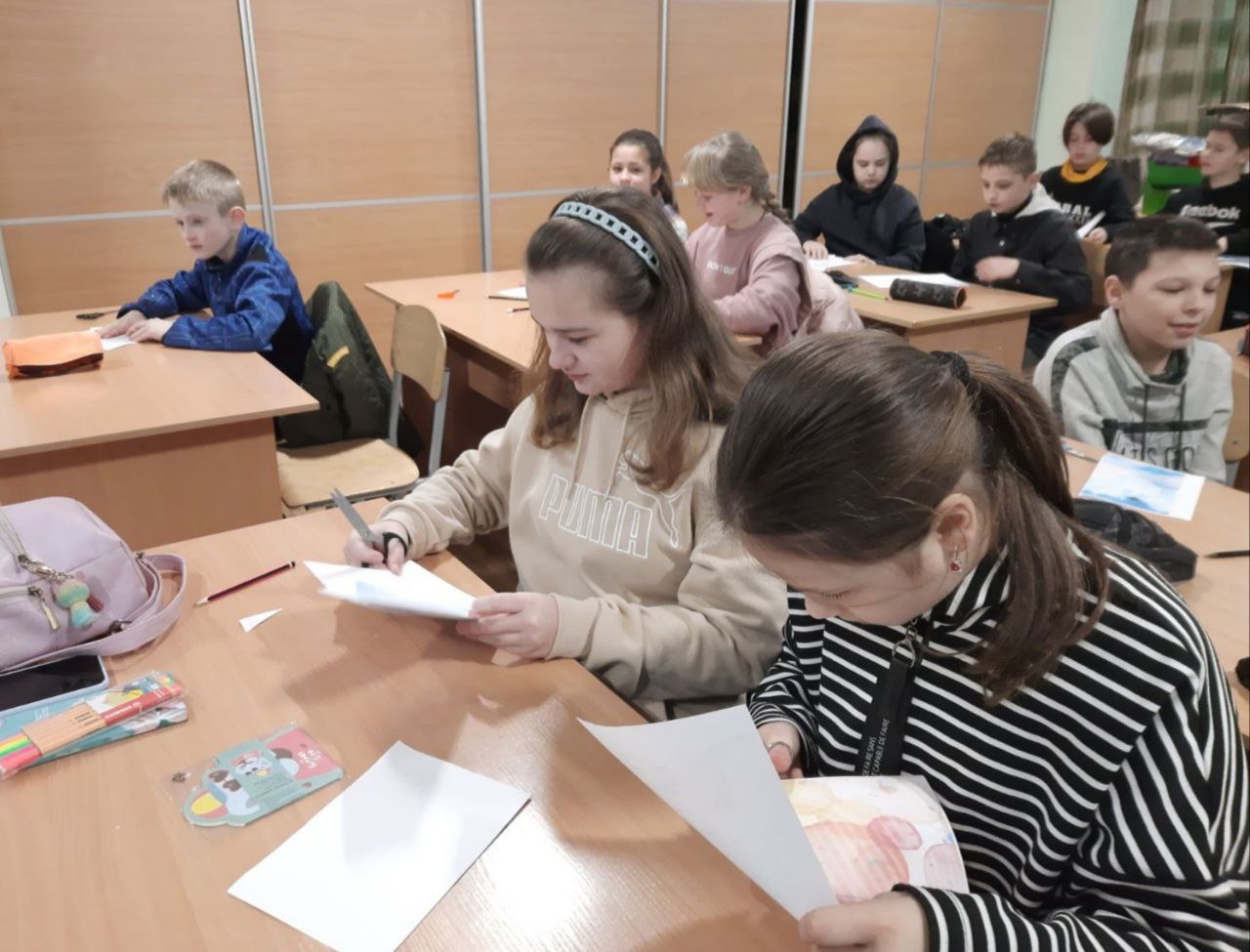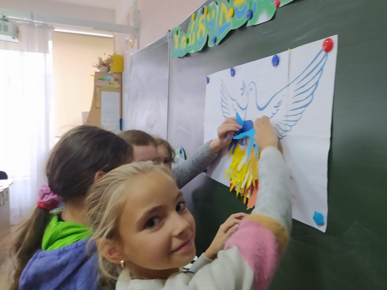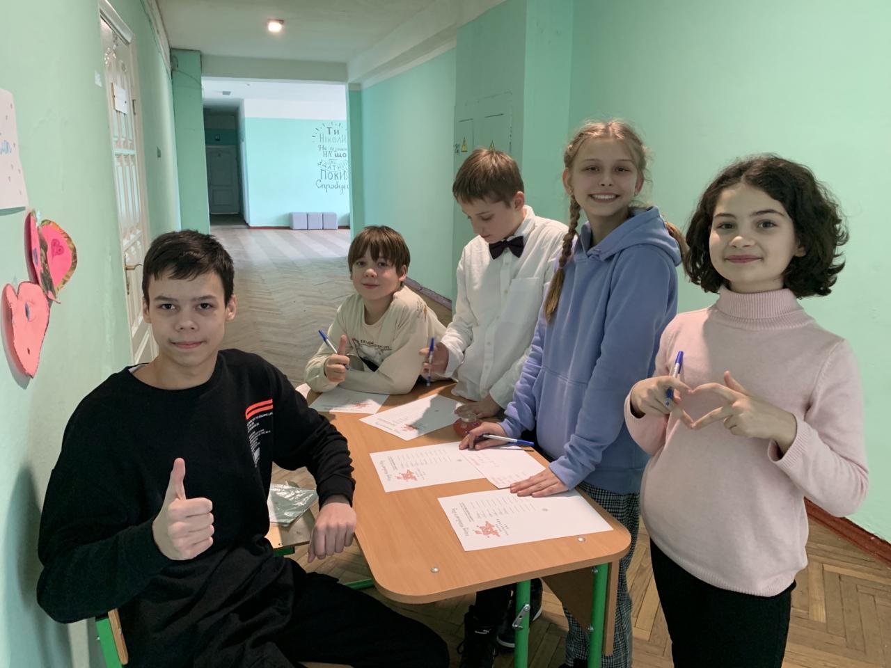 До Дня захисту дітей учні 10-А класу провели майстер-клас в 5-х класах з виготовлення листівок в техніці аплікація для наших захисників
