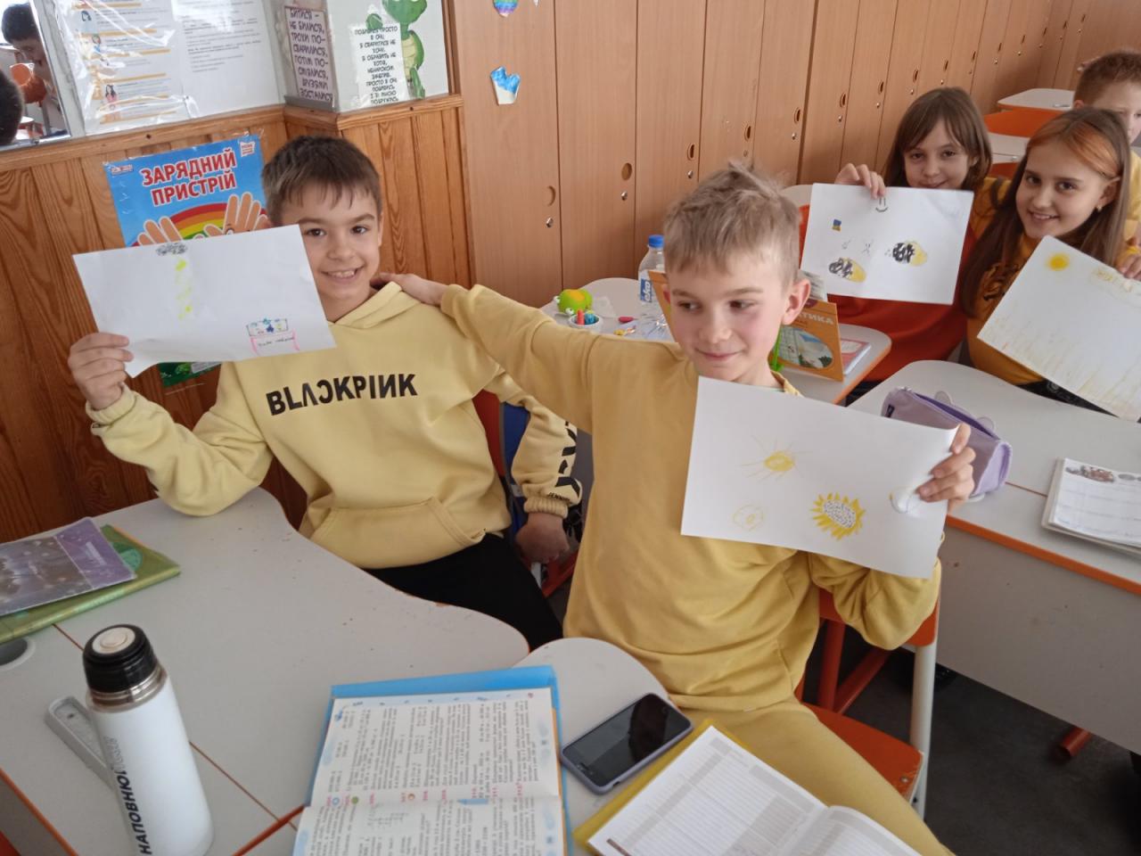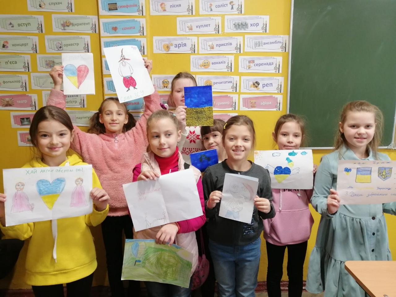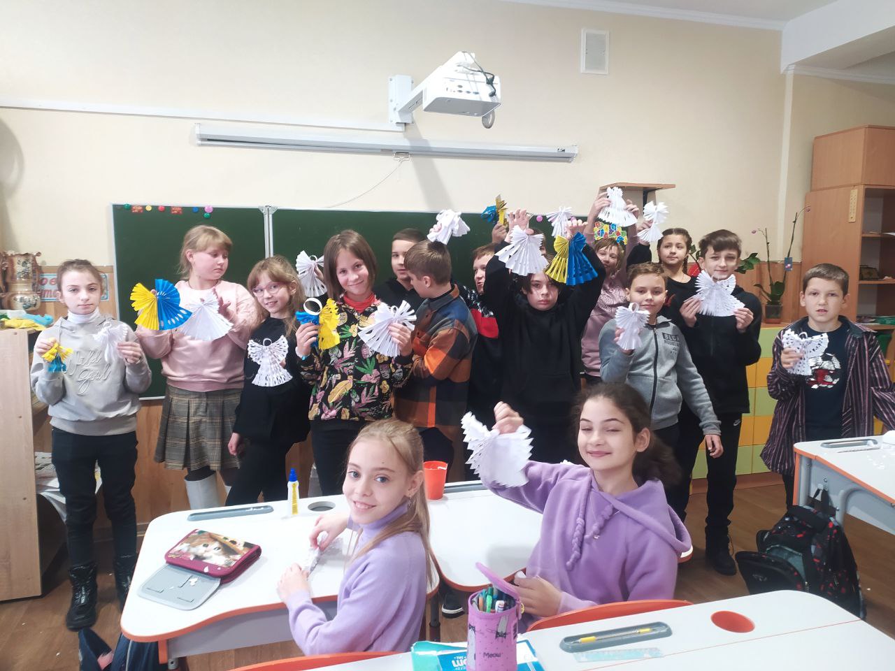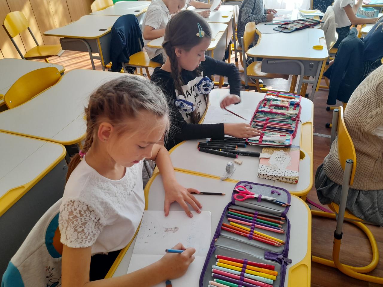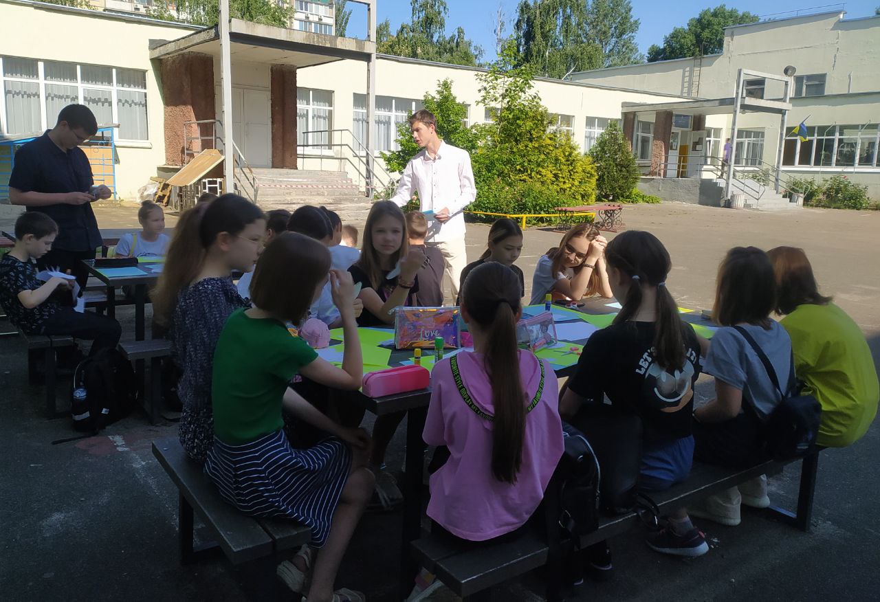 До Дня захисту дітей учні 10-А класу провели майстер-клас в 5-х класах з виготовлення листівок в техніці аплікація для наших захисників