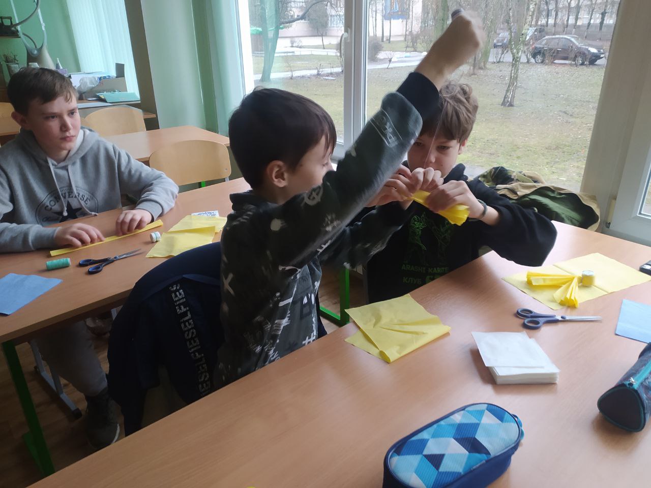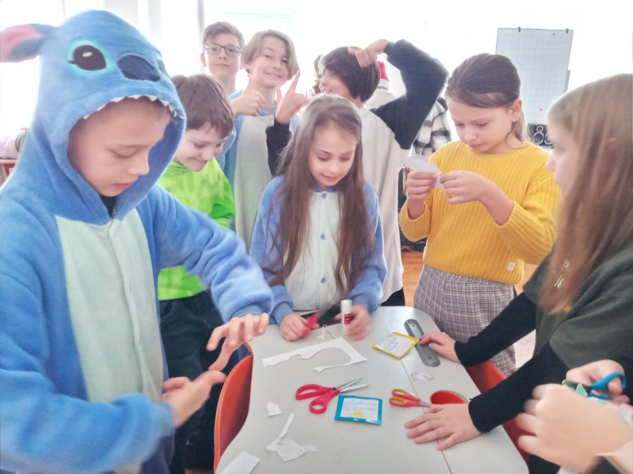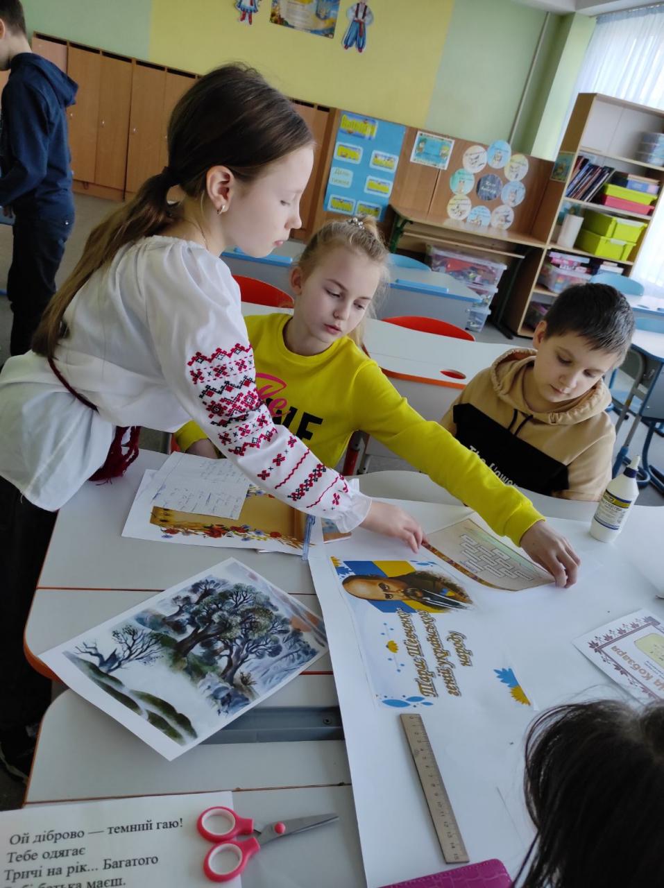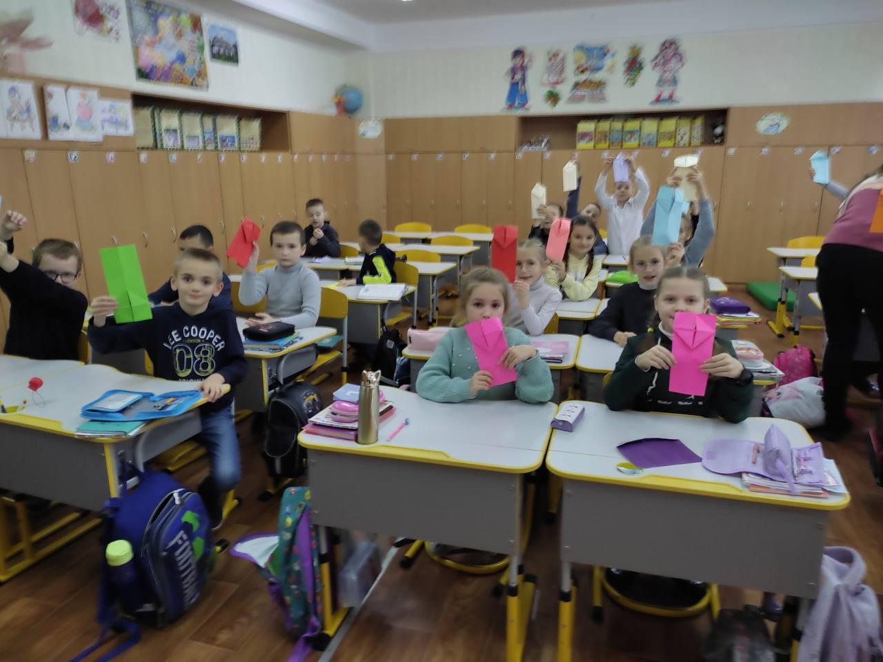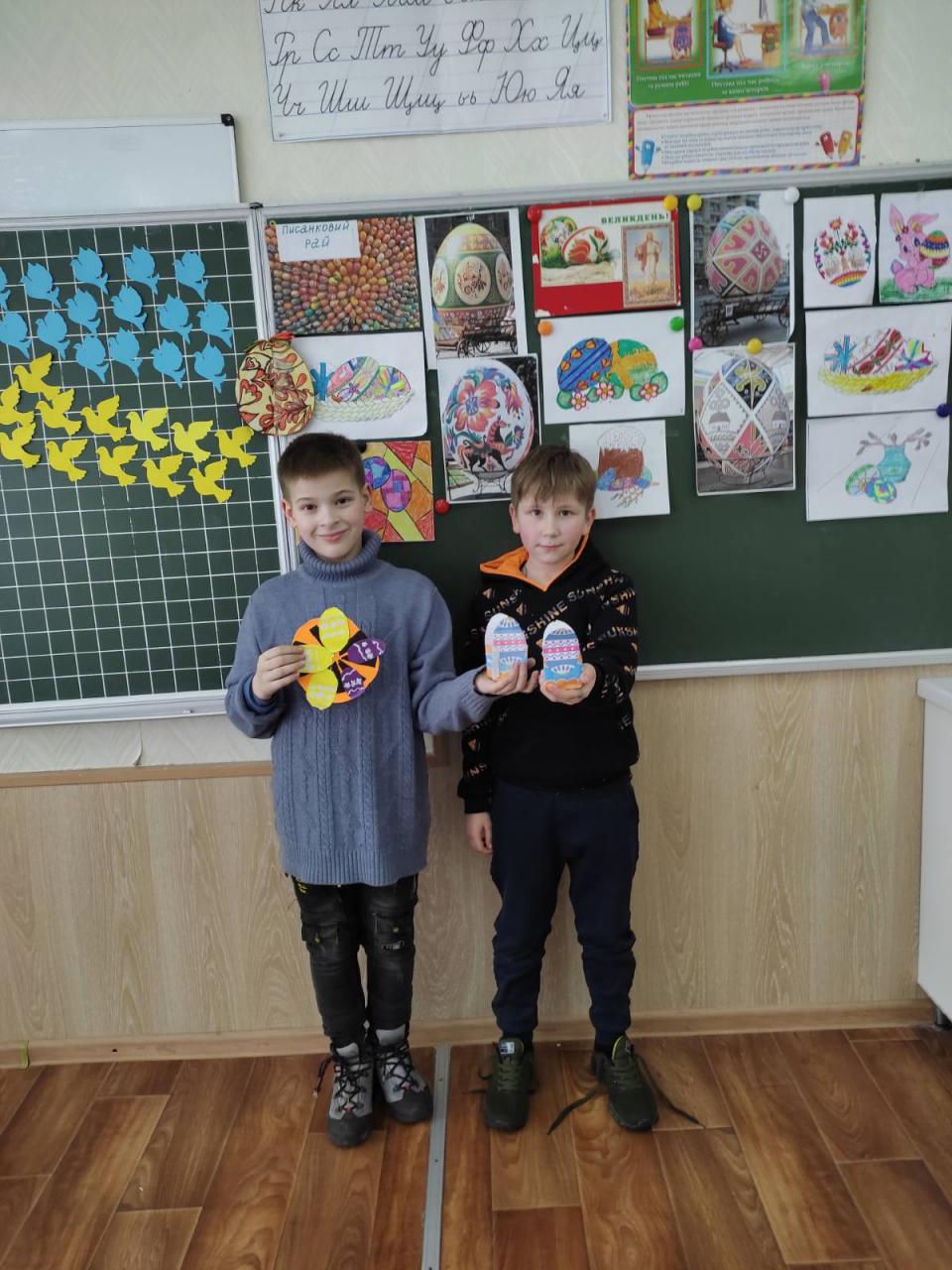 До Дня захисту дітей учні 10-А класу провели майстер-клас в 5-х класах з виготовлення листівок в техніці аплікація для наших захисників