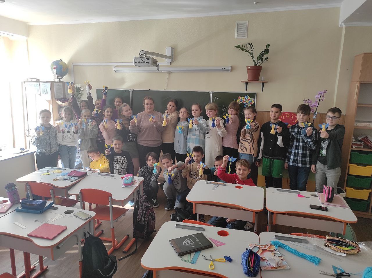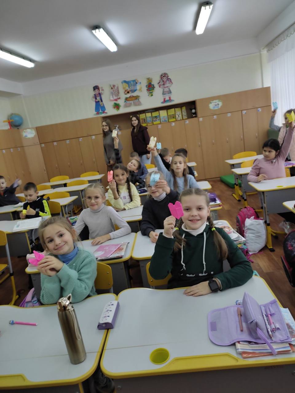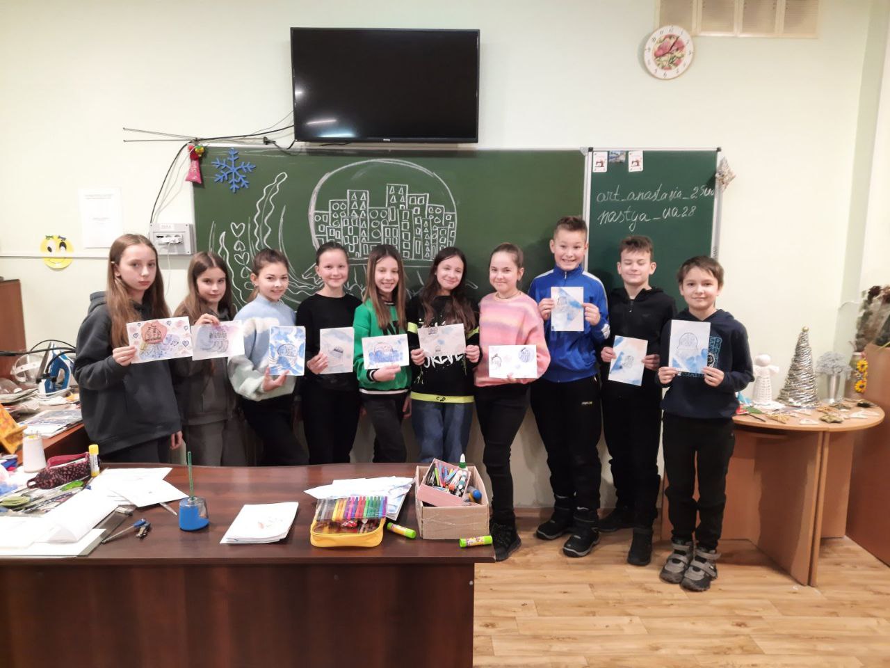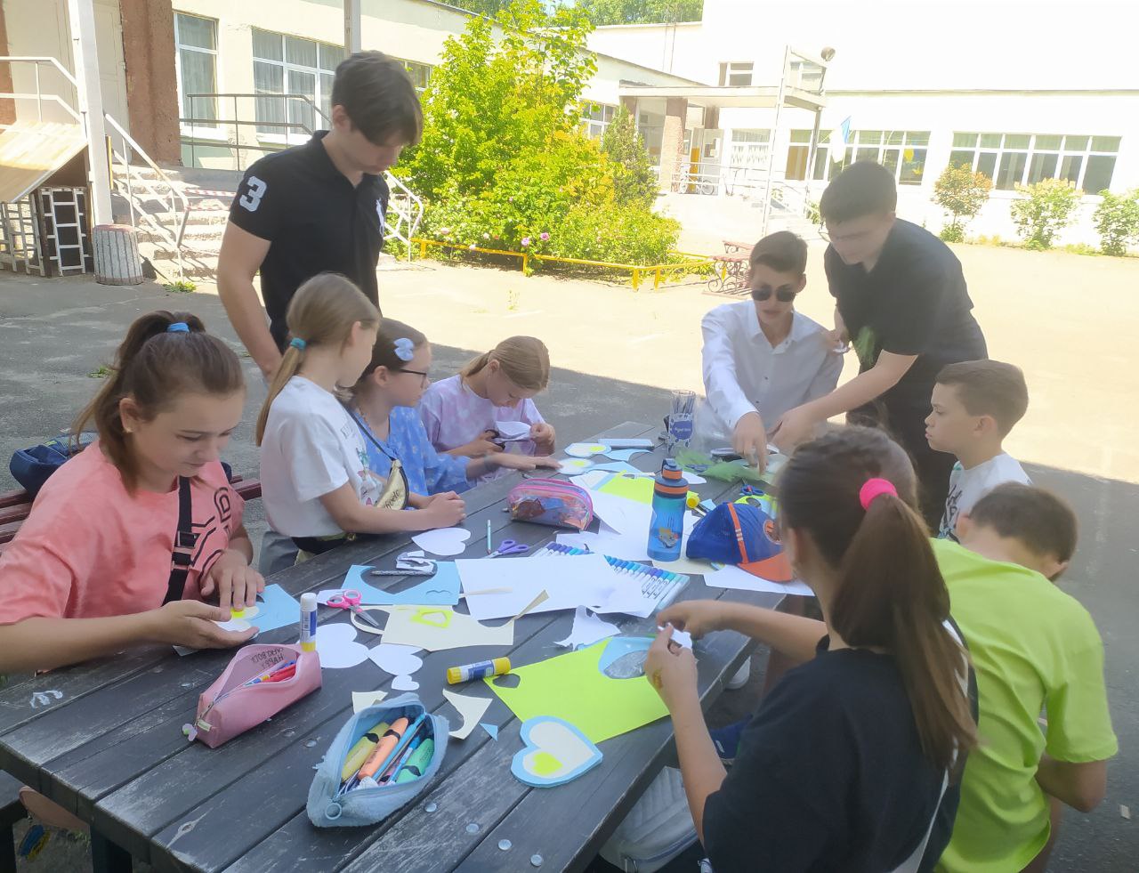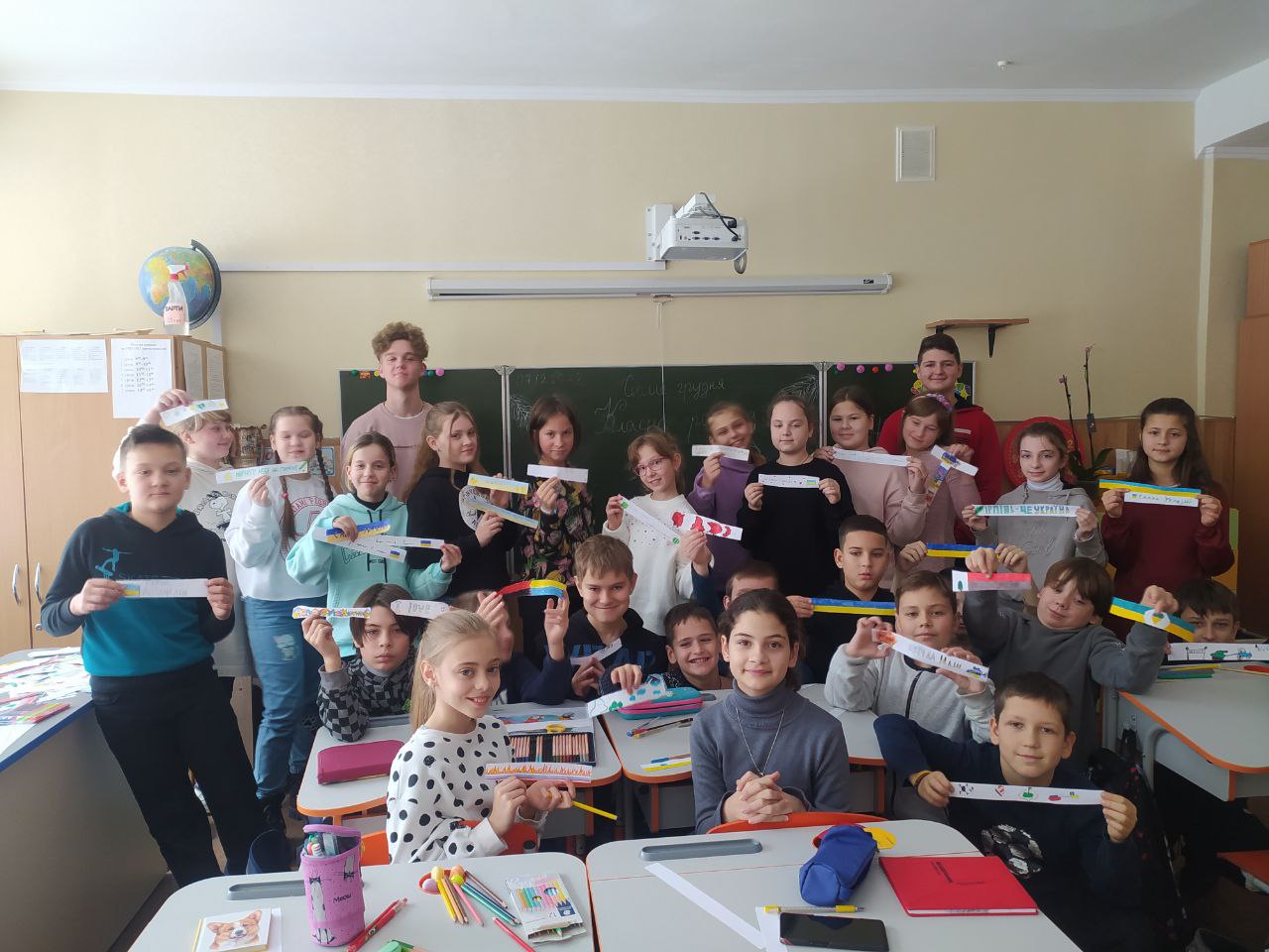 До Дня захисту дітей учні 10-А класу провели майстер-клас в 5-х класах з виготовлення листівок в техніці аплікація для наших захисників