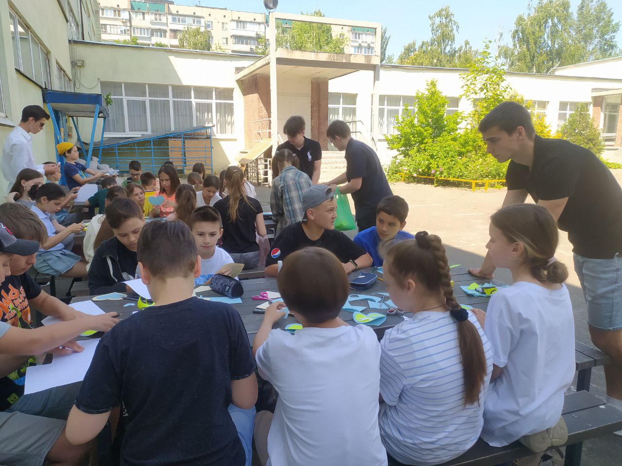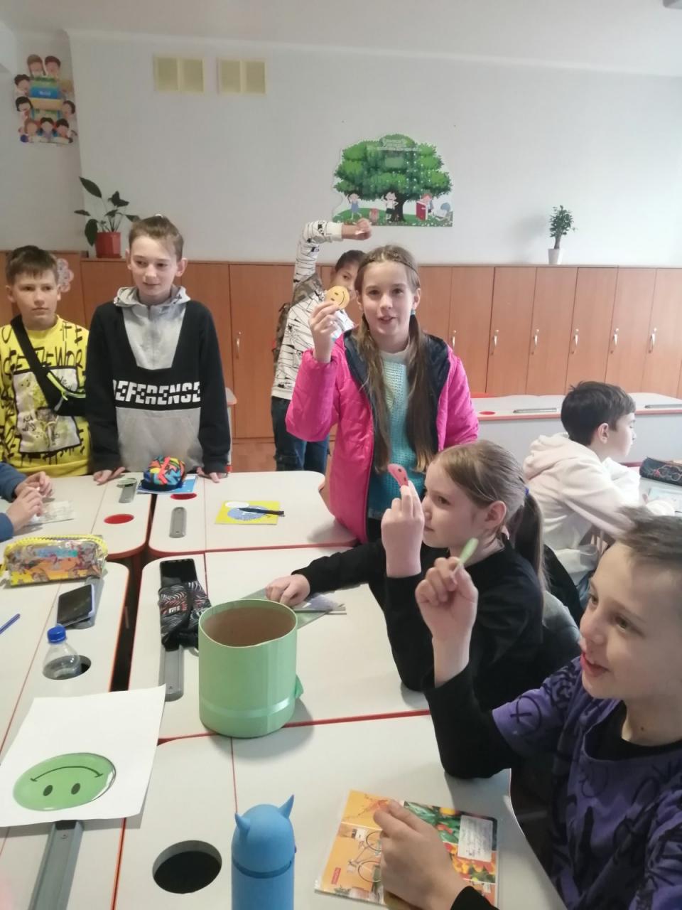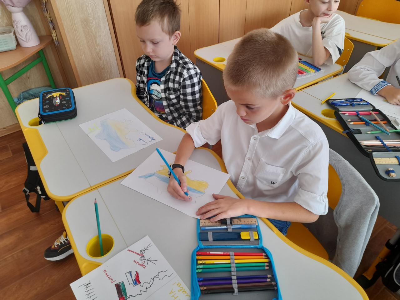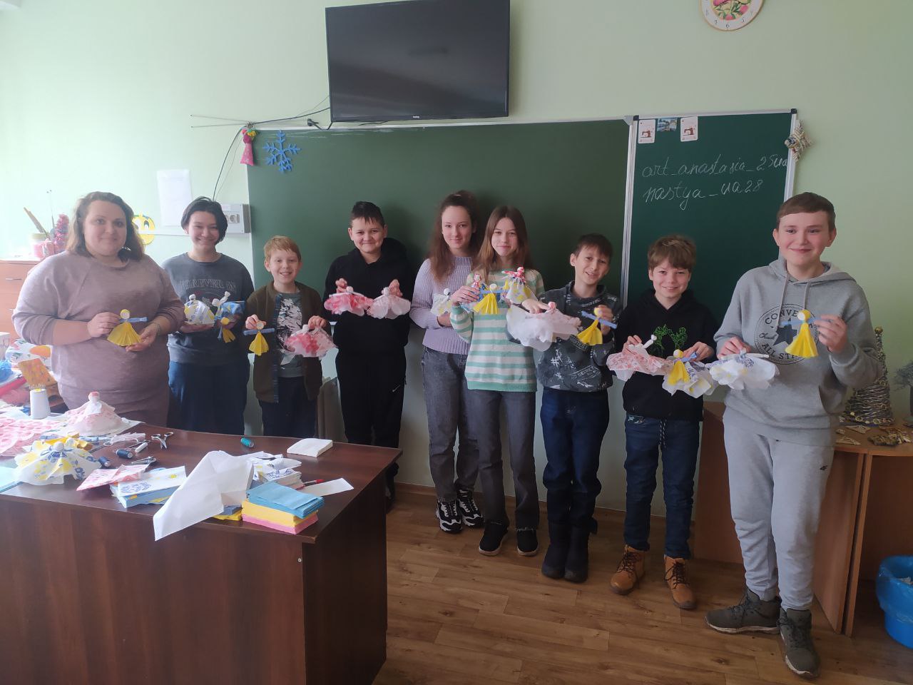 До Дня захисту дітей учні 10-А класу провели майстер-клас в 5-х класах з виготовлення листівок в техніці аплікація для наших захисників