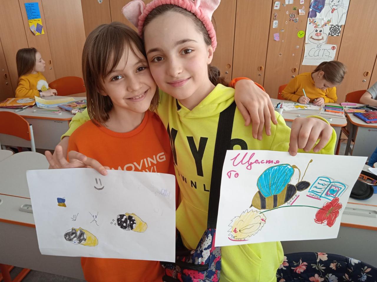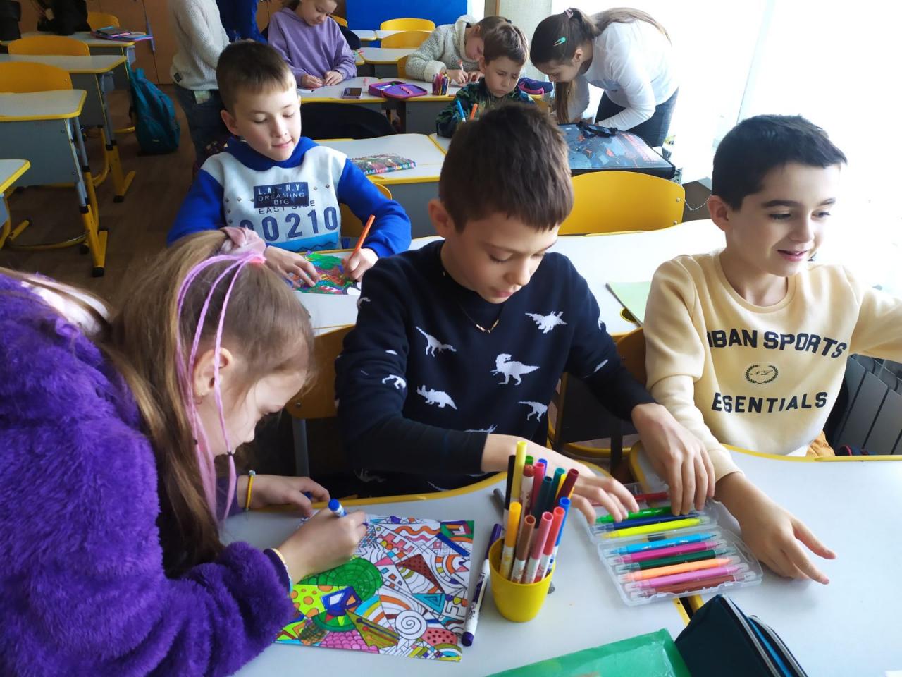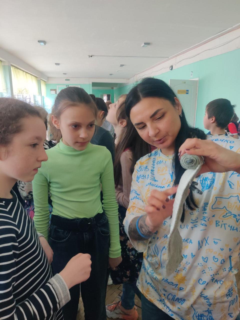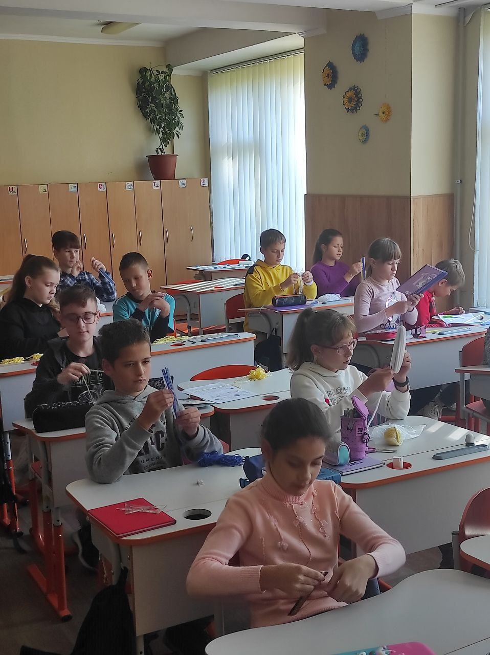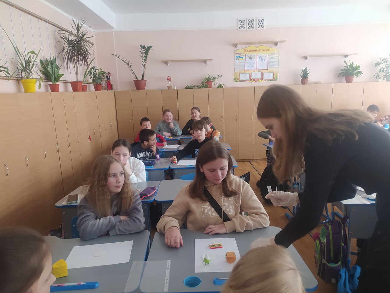 До Дня захисту дітей учні 10-А класу провели майстер-клас в 5-х класах з виготовлення листівок в техніці аплікація для наших захисників