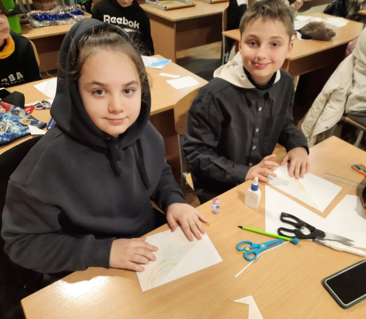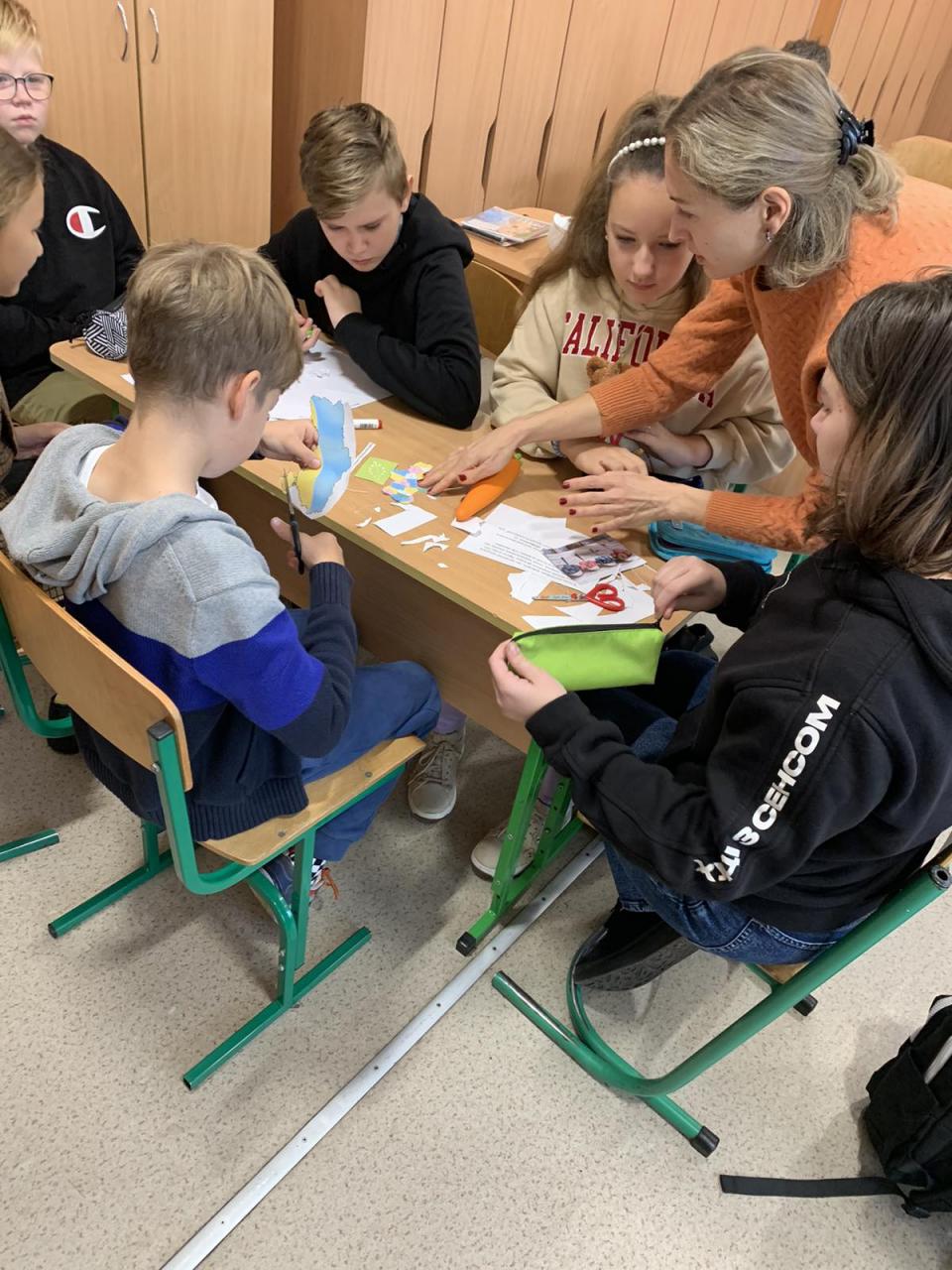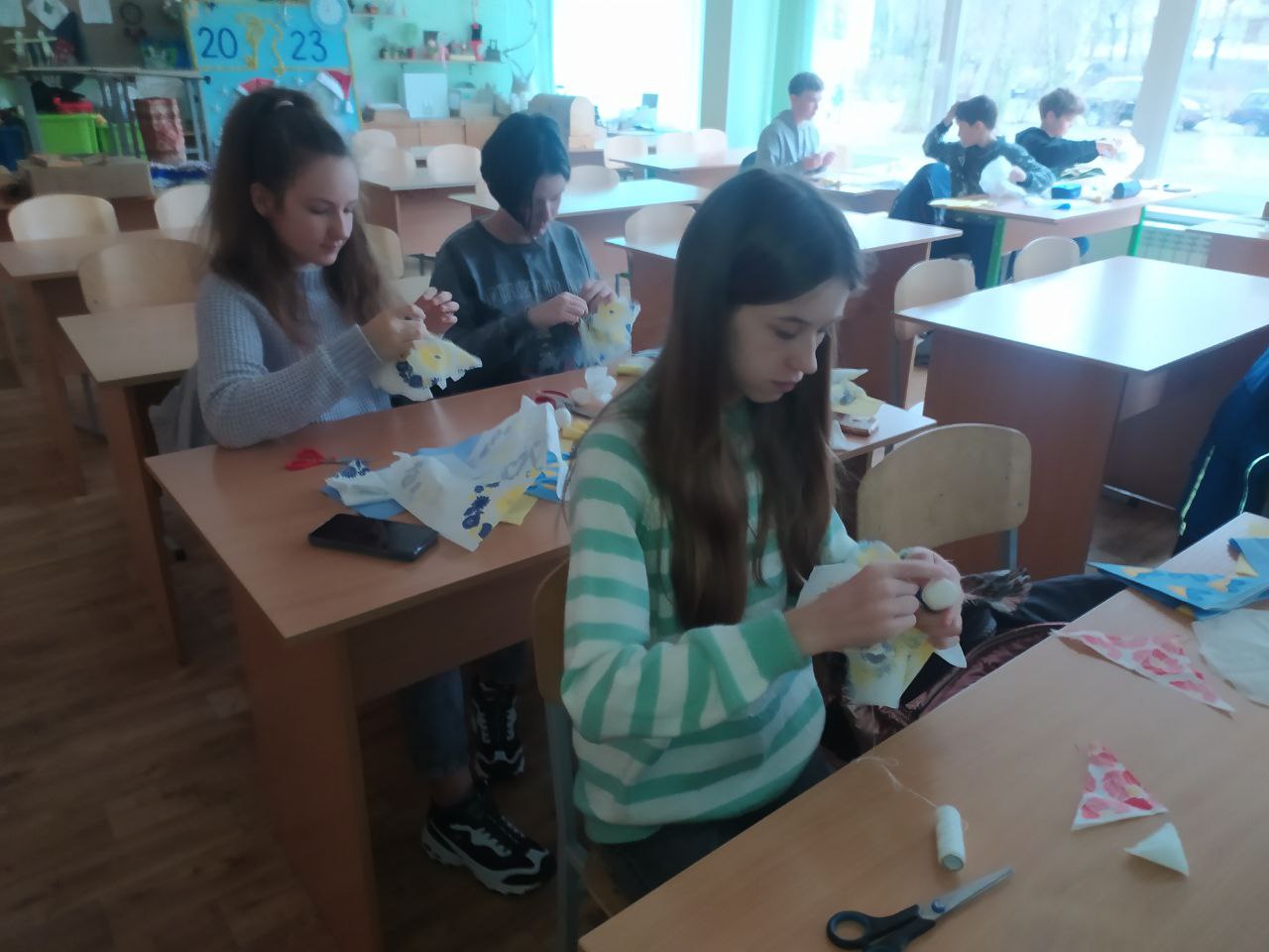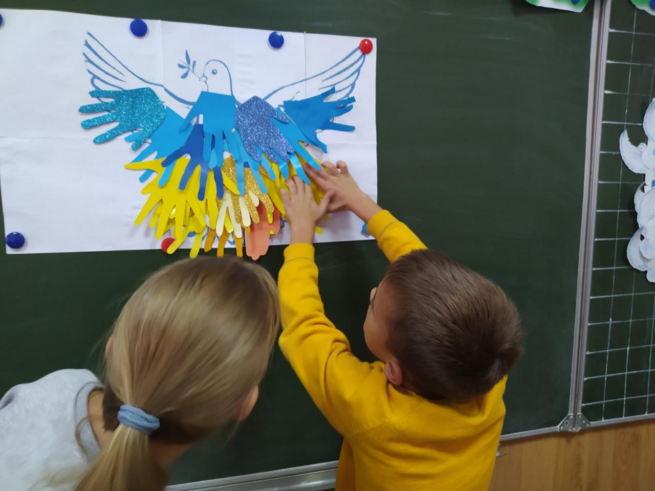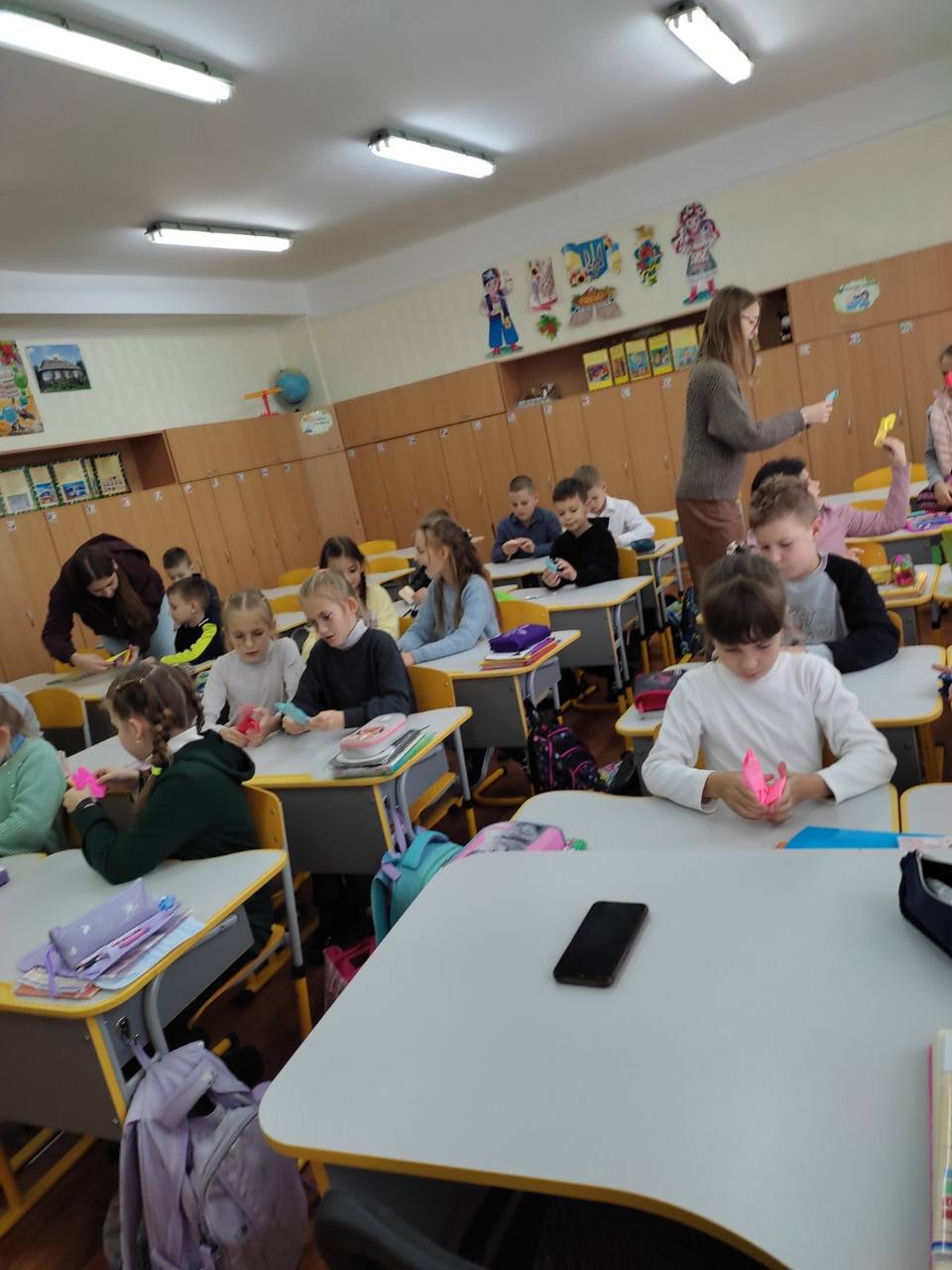 До Дня захисту дітей учні 10-А класу провели майстер-клас в 5-х класах з виготовлення листівок в техніці аплікація для наших захисників