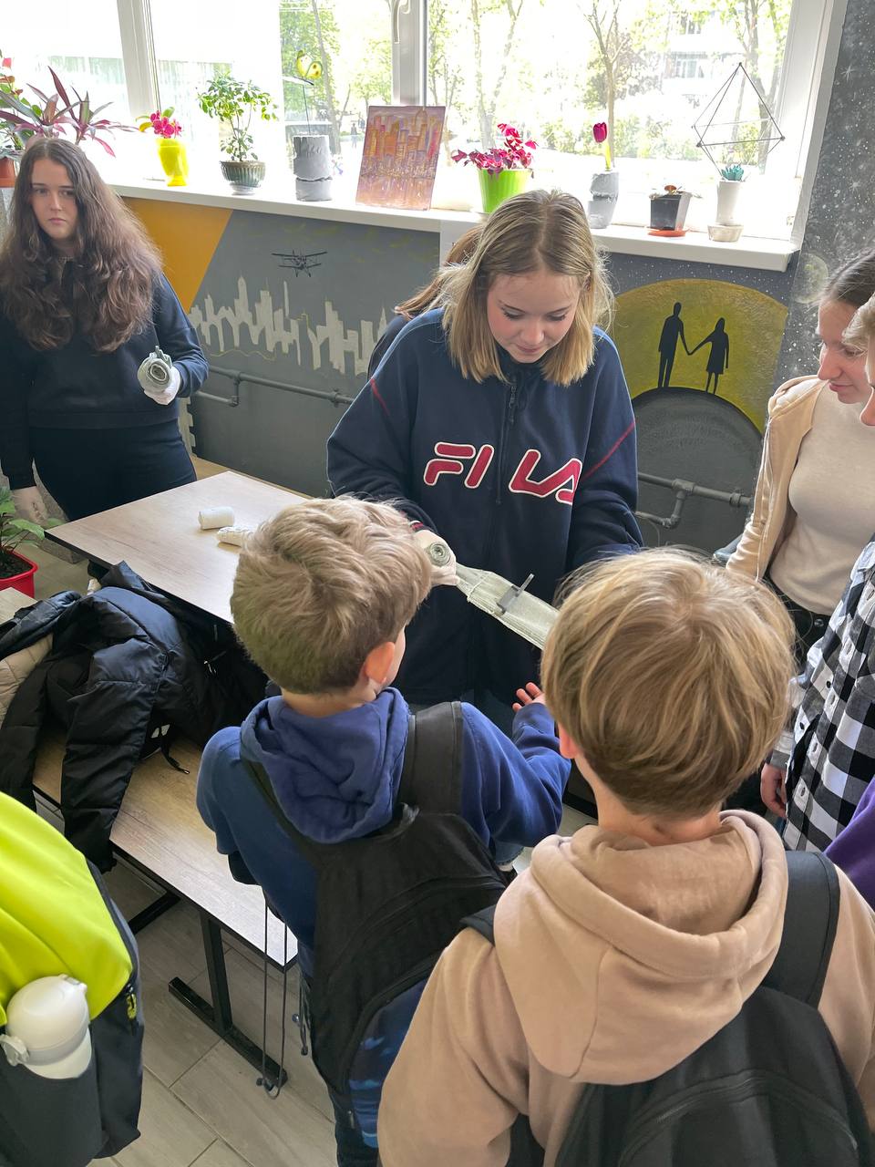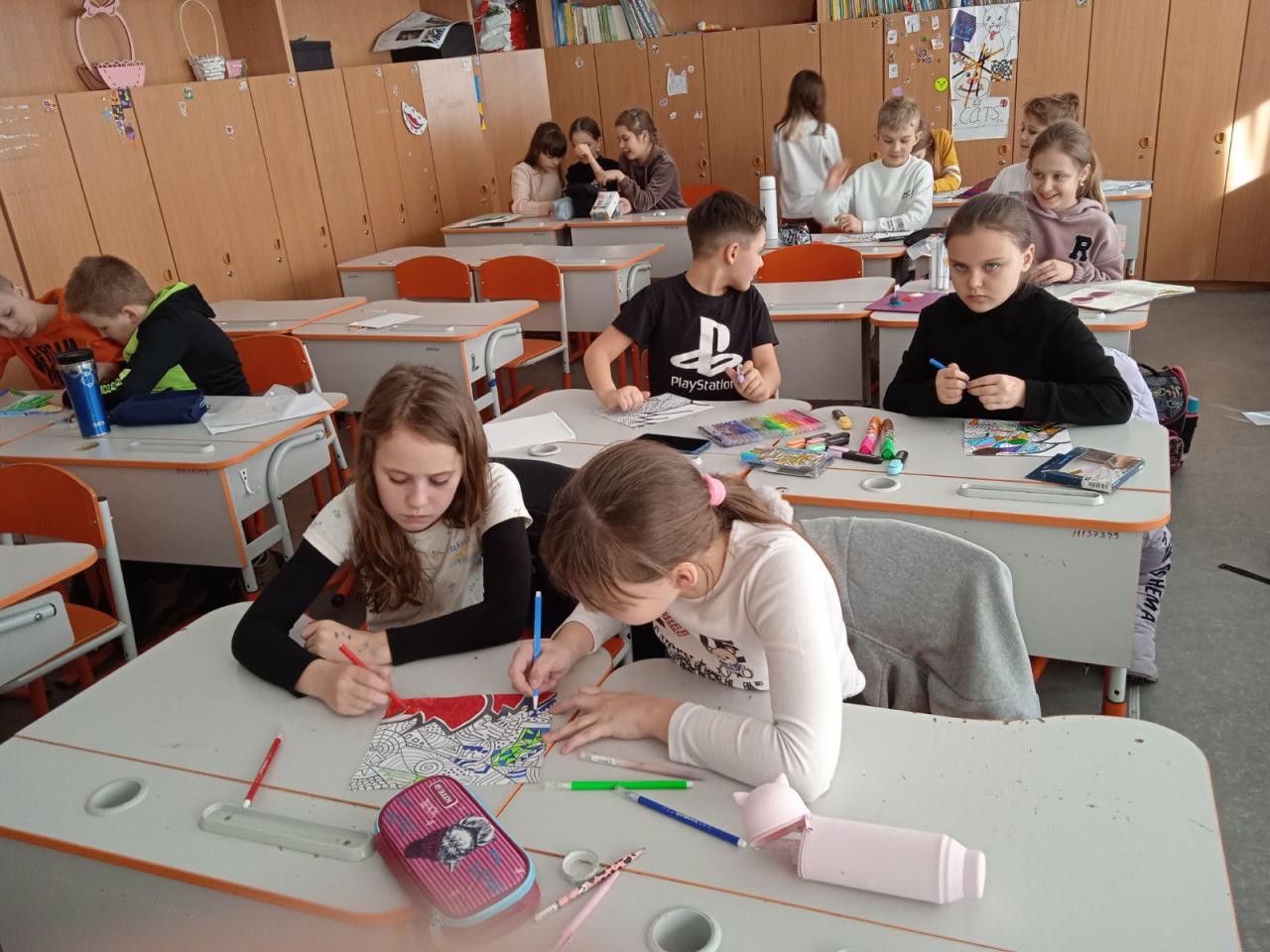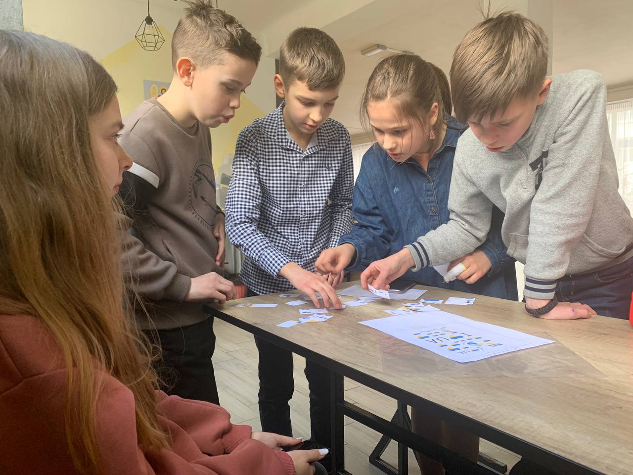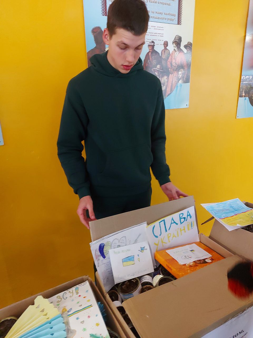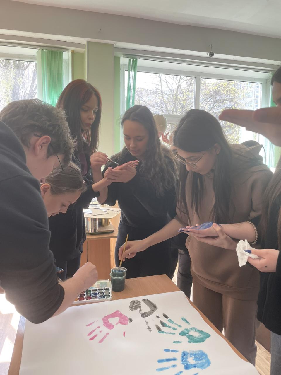 До Дня захисту дітей учні 10-А класу провели майстер-клас в 5-х класах з виготовлення листівок в техніці аплікація для наших захисників