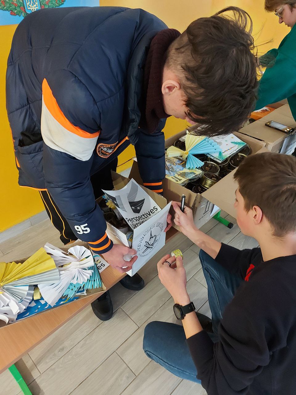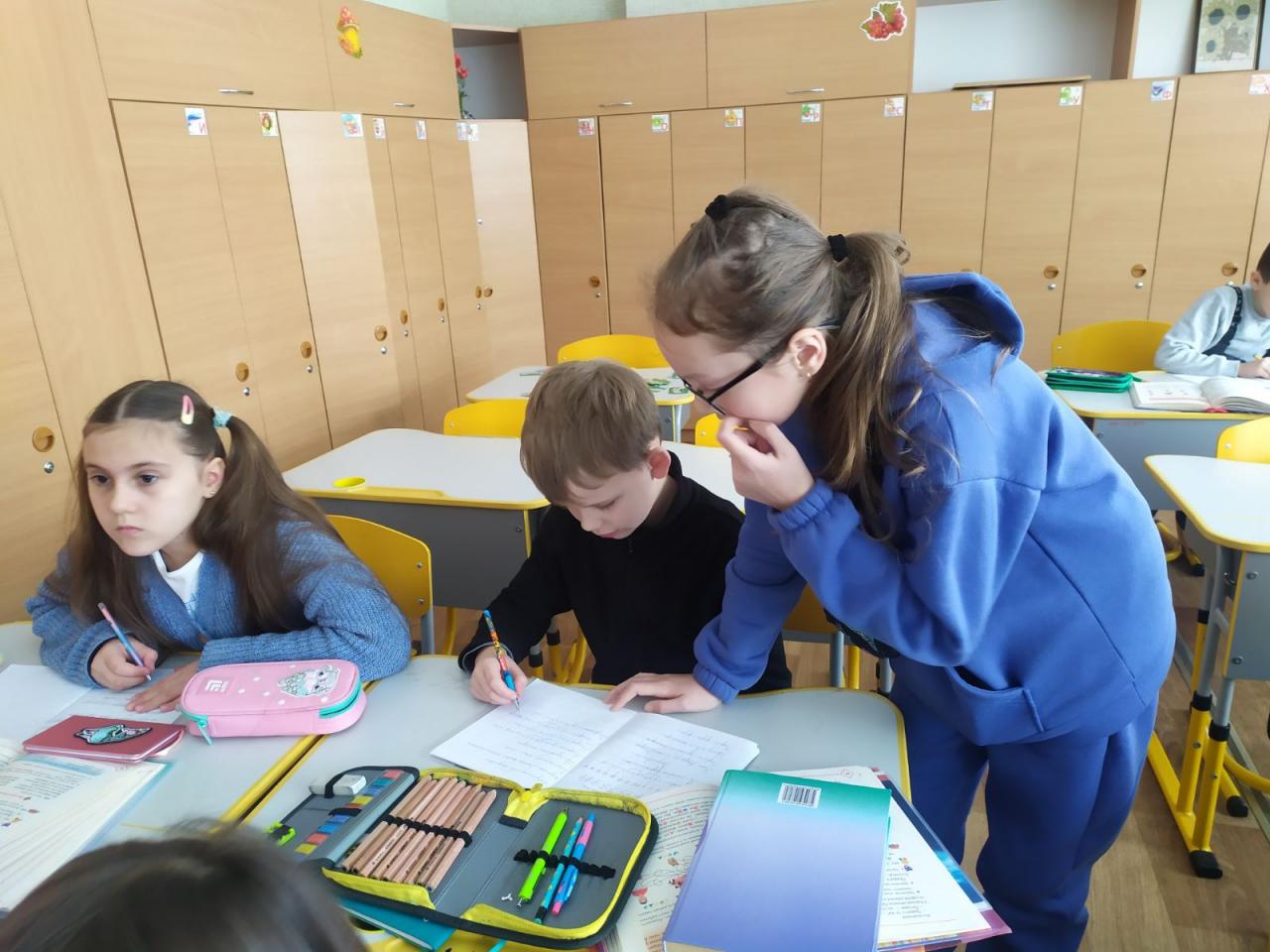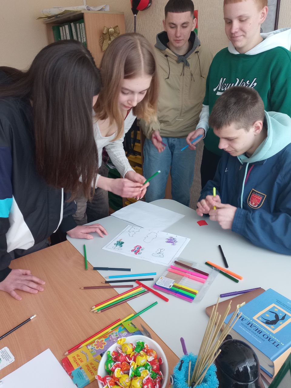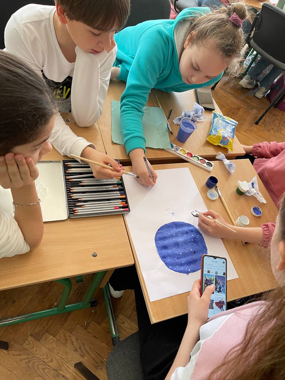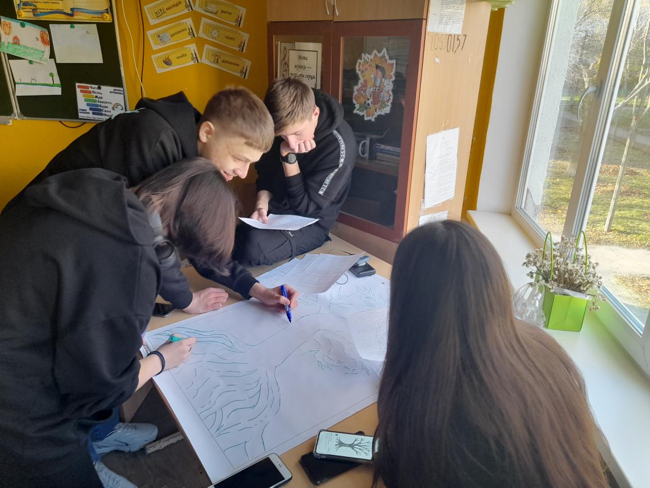 До Дня захисту дітей учні 10-А класу провели майстер-клас в 5-х класах з виготовлення листівок в техніці аплікація для наших захисників