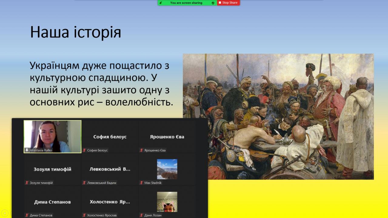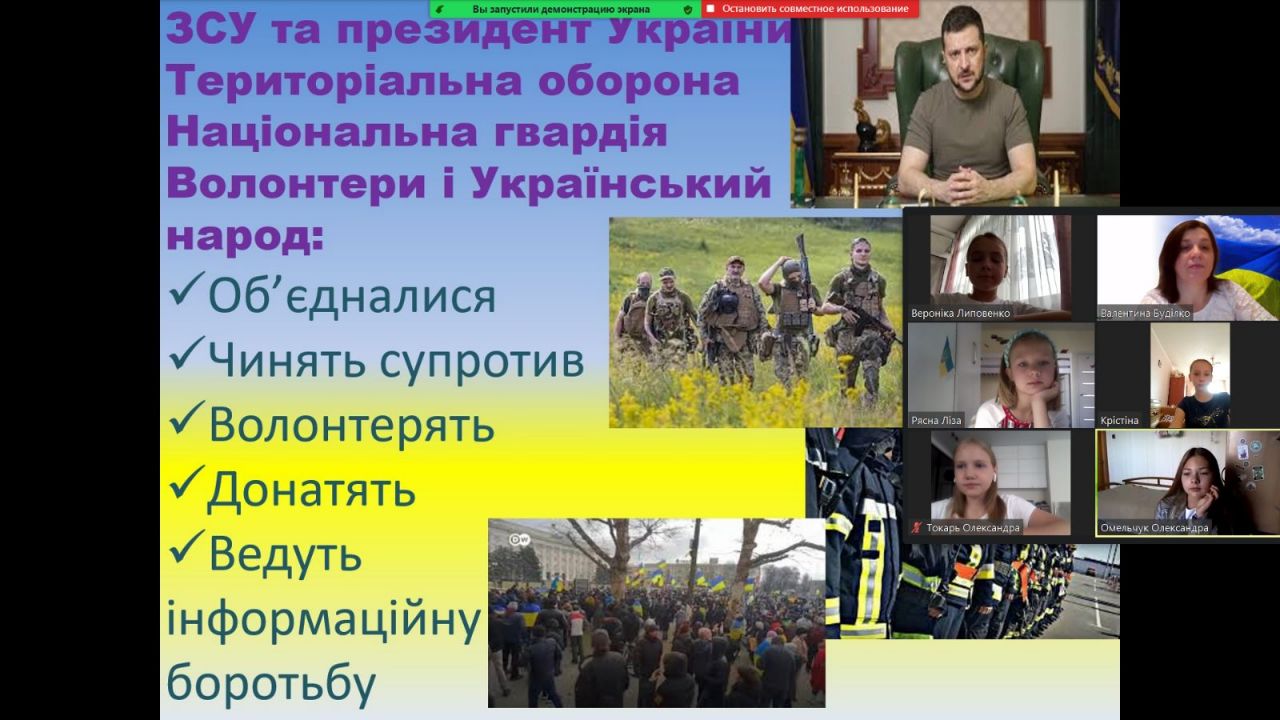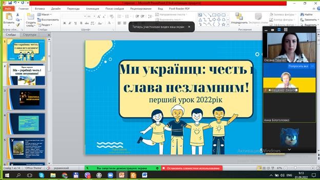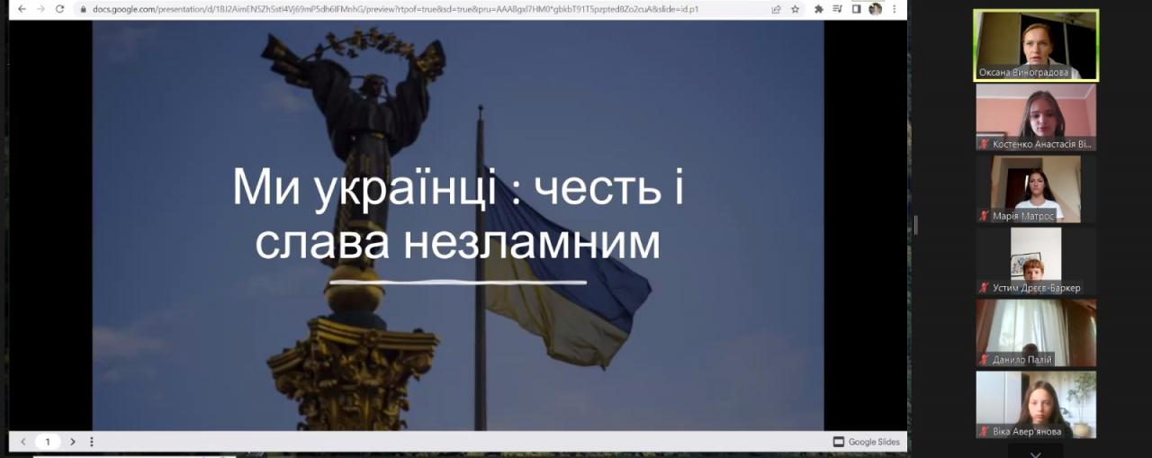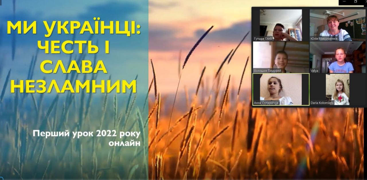 Перший урок було проведено онлайн за темою "Ми українці: честь і слава незламним!"
