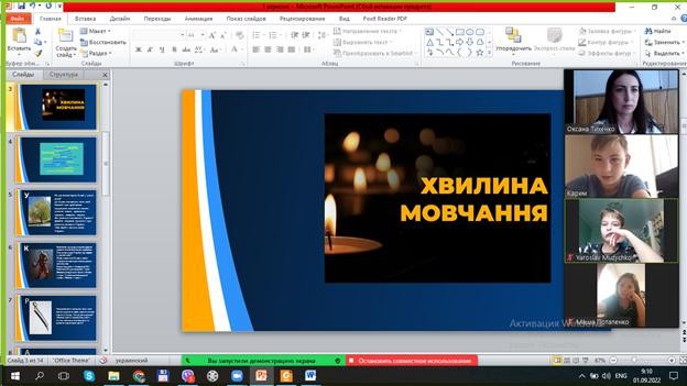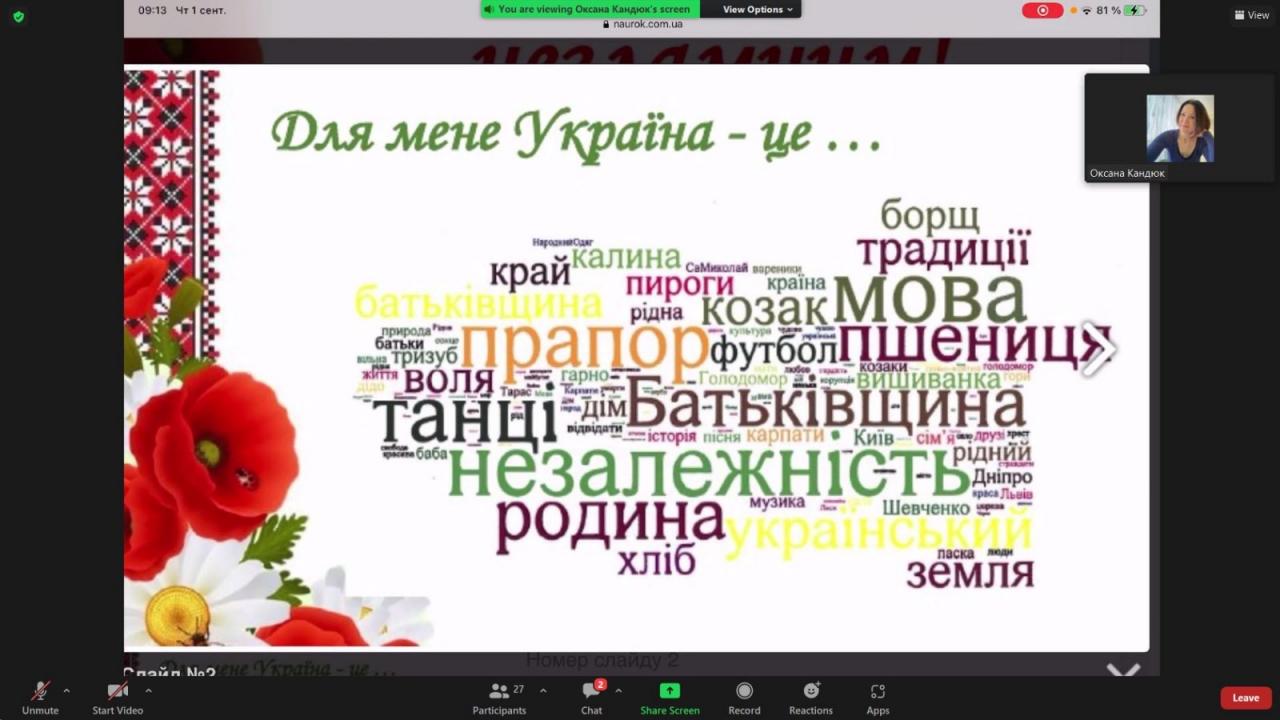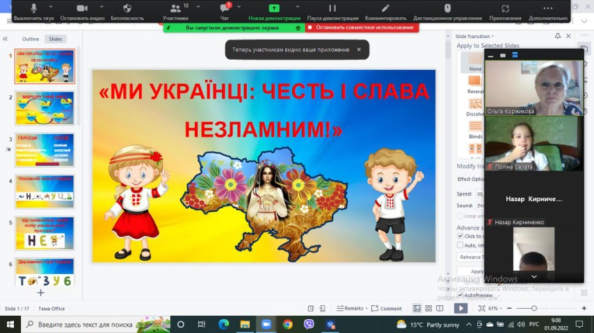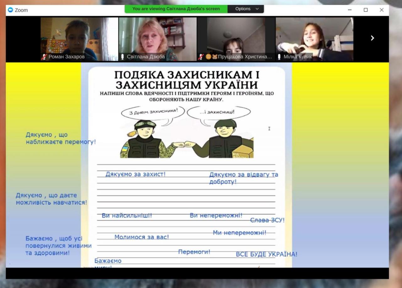 Перший урок було проведено онлайн за темою "Ми українці: честь і слава незламним!"