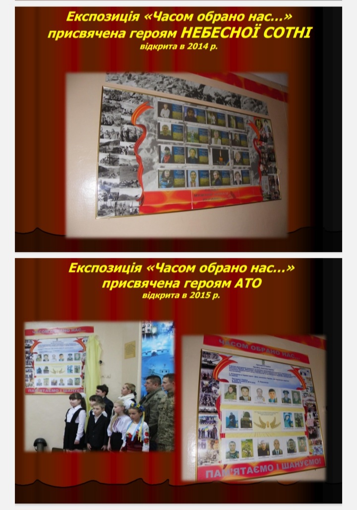 експозицію "Війна рф проти України - війна за незалежність", в якій представлені речі загиблих випускників-захисників України.