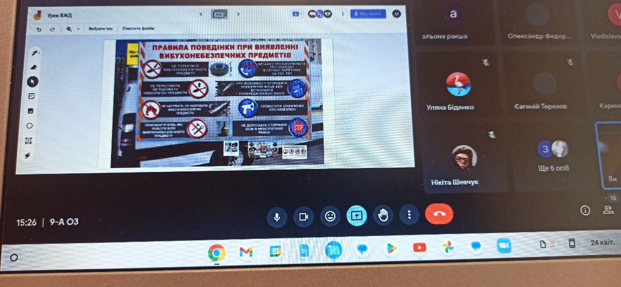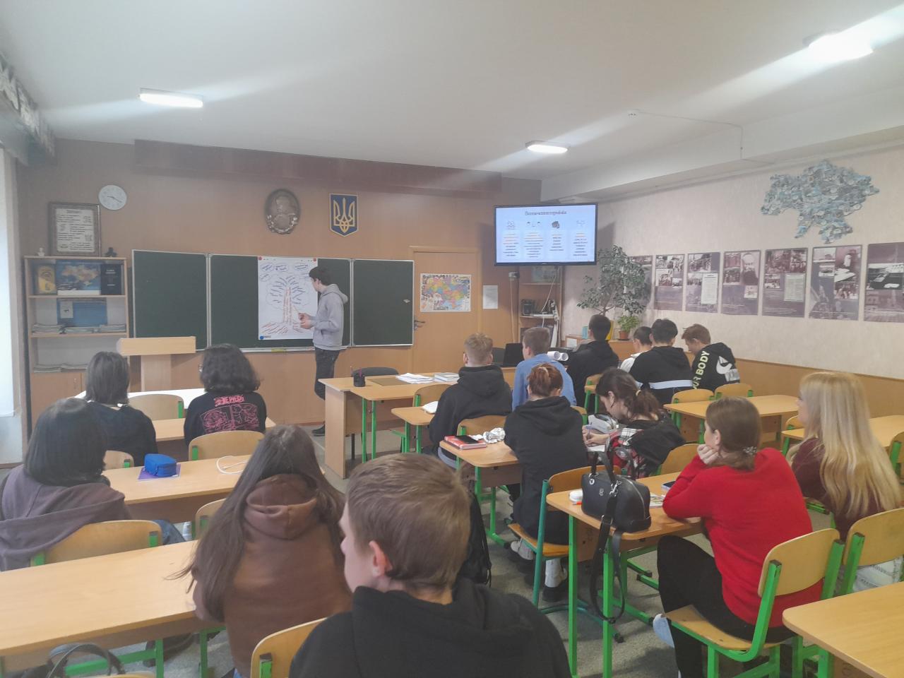 Було проведений цікавий "Єдиний урок безпеки" для учнів 9-х класів, на якому обговорювалася поведінка учнів під час повітряної